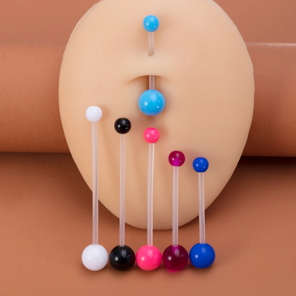 6PCS Acrylic Long Bar Navel Flexible Piercing