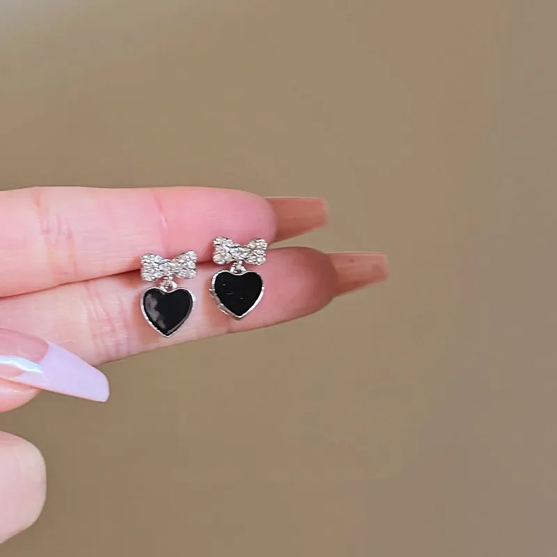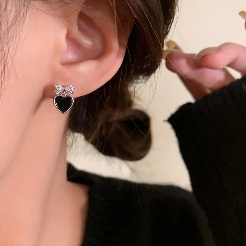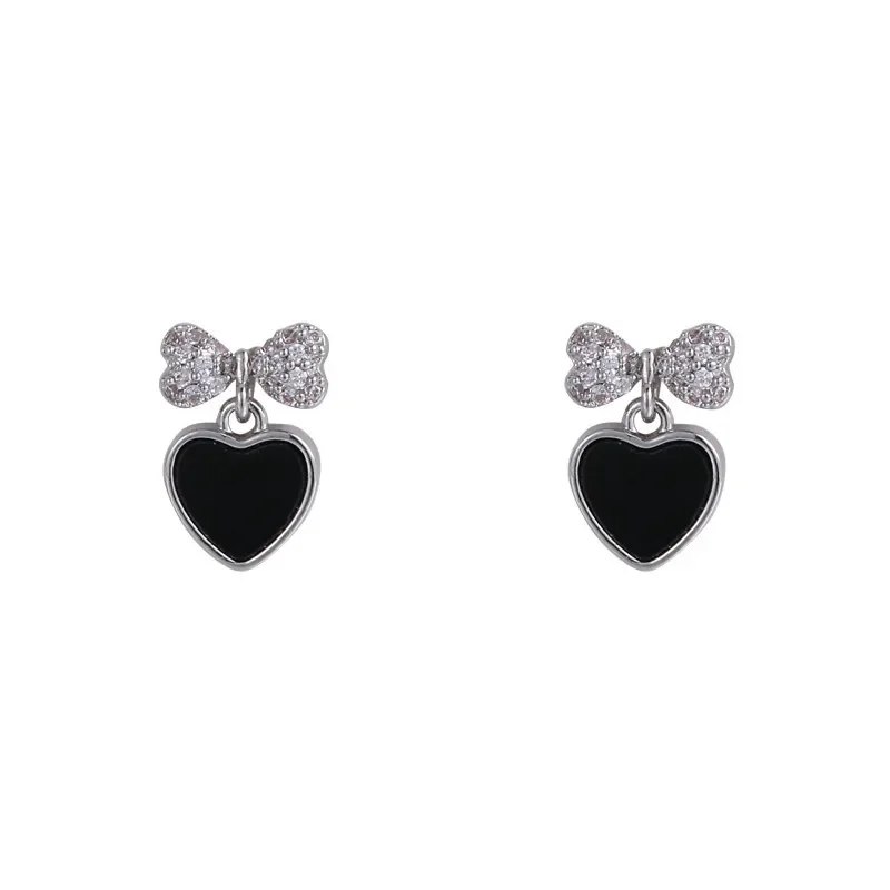 Aros de corazón negro y lazo