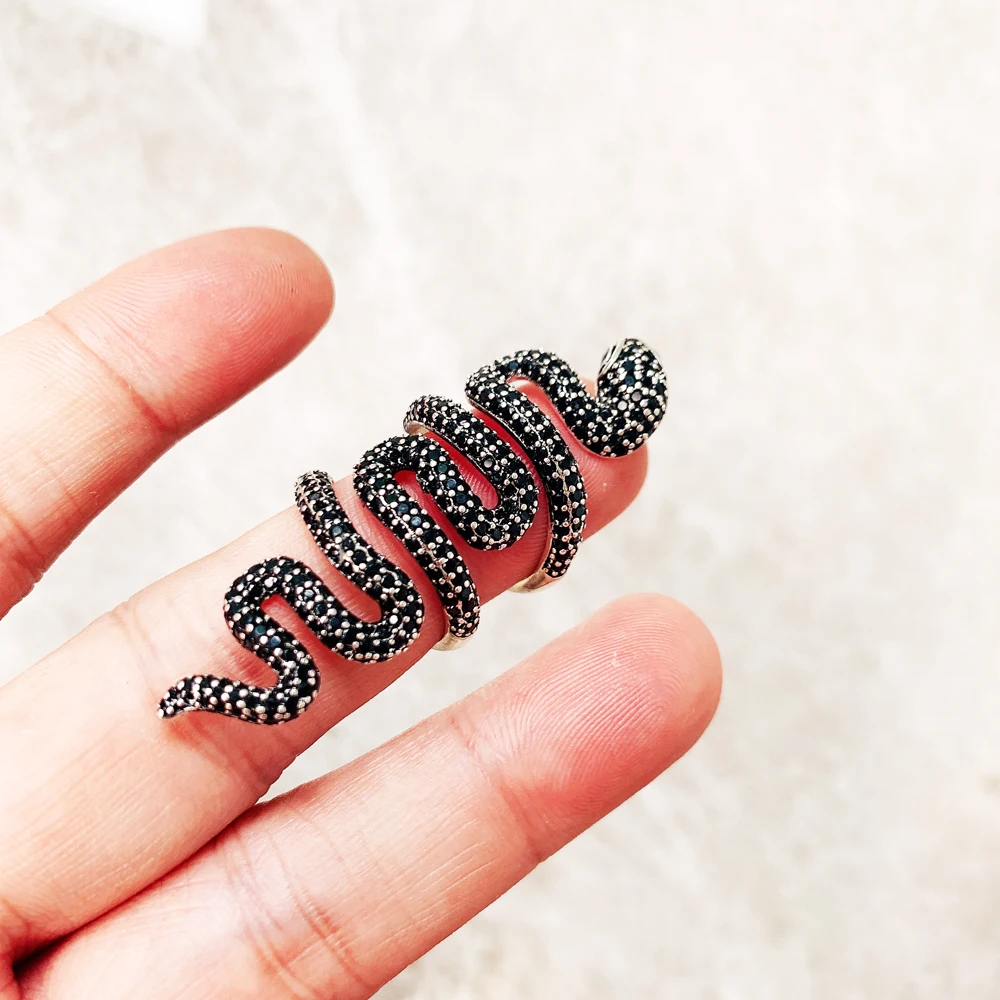 Long,Black,Snake,Ring,Europe,Style,Vintage,Fine,Jewerly,Girls,Women,Gift,925,Sterling,Silver